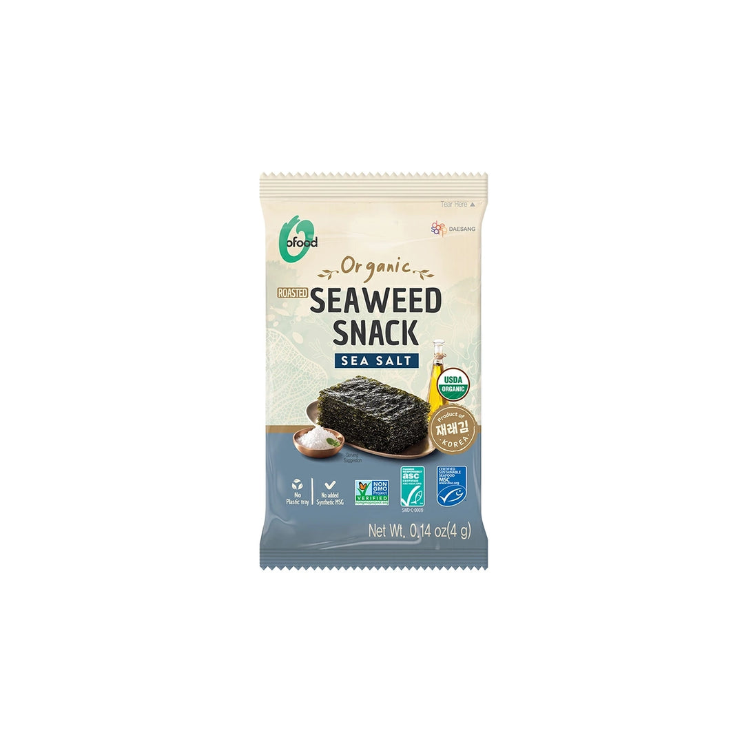 Enjoy a single serving of our delicious Sea Weed Snack with Sea Salt. This 4g pack features thinly roasted seaweed with a simple, savory sea salt seasoning. A perfect light and crispy treat.